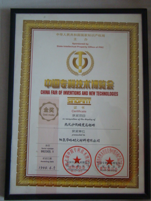 熱風爐用低蠕變高鋁磚、高荷軟高鋁磚獲省科技進步二等獎,微膨脹高鋁磚列入火炬計劃項目,炭素焙燒爐用特種高鋁磚已批準國家專利